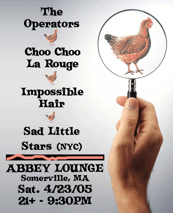 with Choo Choo la Rouge! Impossible Hair! The Sad Little Stars! and next door in the pub: John O'Hara!