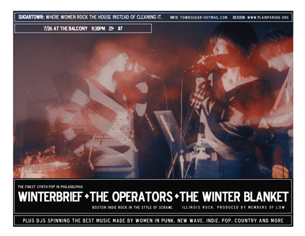 While watching the disappointing serial killer movie Minus Man, we mused that being a touring band provides quite a lot of opportunity to kill people in random locations. And we realized _nobody_ would be able to figure it out if we were on a killing spree. The detective, with maps and pushpins: "Philly...Louisville...Akron?! What's the pattern? It makes no sense!"